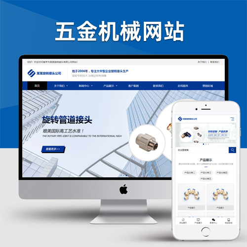 (自适应移动端)五金机械网站pbootcms模板 蓝色营销型五金配件网站源码下载