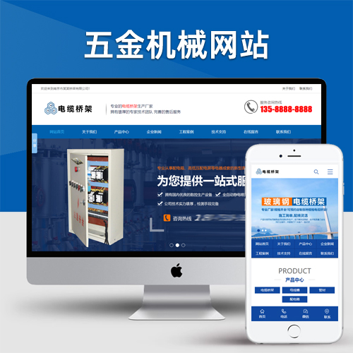 (PC+WAP)蓝色电缆桥架类网站PbootCMS模板 电缆钢结构五金机械网站源码下载