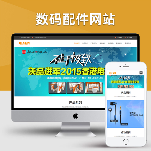 (自适应手机端)响应式电脑手机配件网站pbootcms模板 HTML5电子数码产品配件网站源码下载