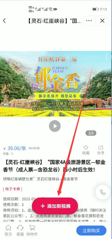找到需要挂载的具体页面,点击按钮下方的【添加到视频】按钮。然后返回视频发布页面,操作发布视频。