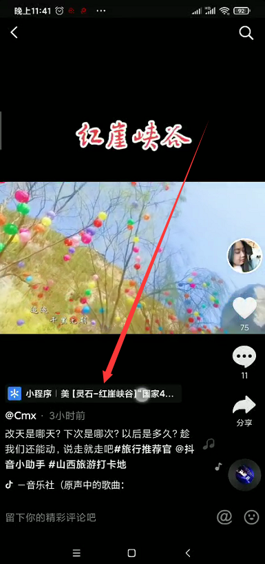 七、视频发布成功之后,视频左下角即可出现小程序跳转链接,点击即可打开小程序。