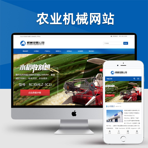 (自适应移动端)简单的大型农业机械设备类网站pbootcms模板 水稻玉米收割机网站源码下载