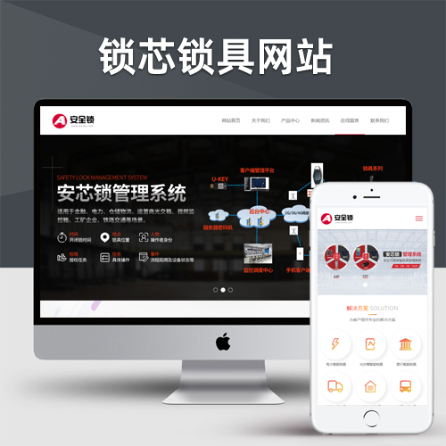 (自适应手机端)安全锁锁芯锁具网站pbootcms模板 智能防盗安全锁网站源码下载