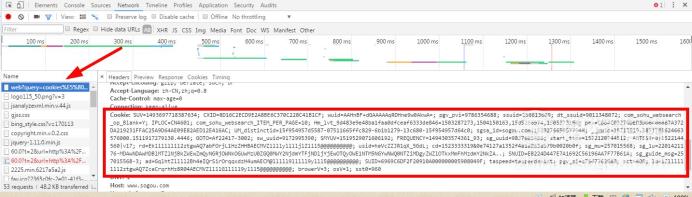 抓取完成后我们点击一个链接就会自动进入详细页面,我们滑动鼠标往下查找就会看到“cookie”的数据了。如图