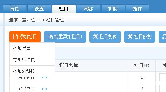 选择【栏目】,找到【添加栏目】,点击【添加单网页】