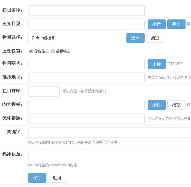 弹出对话框后,我们只需要设置【栏目名称】然后点击保存